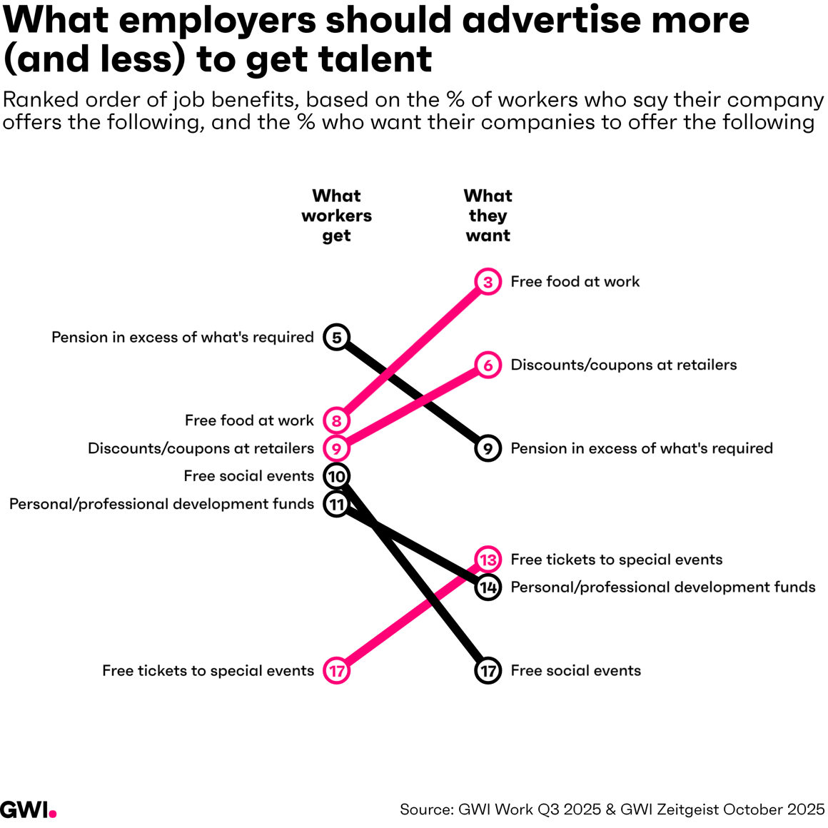 What makes a job ad stand out? We ranked the benefits workers get against the ones they actually want - and the gaps are hard to miss.